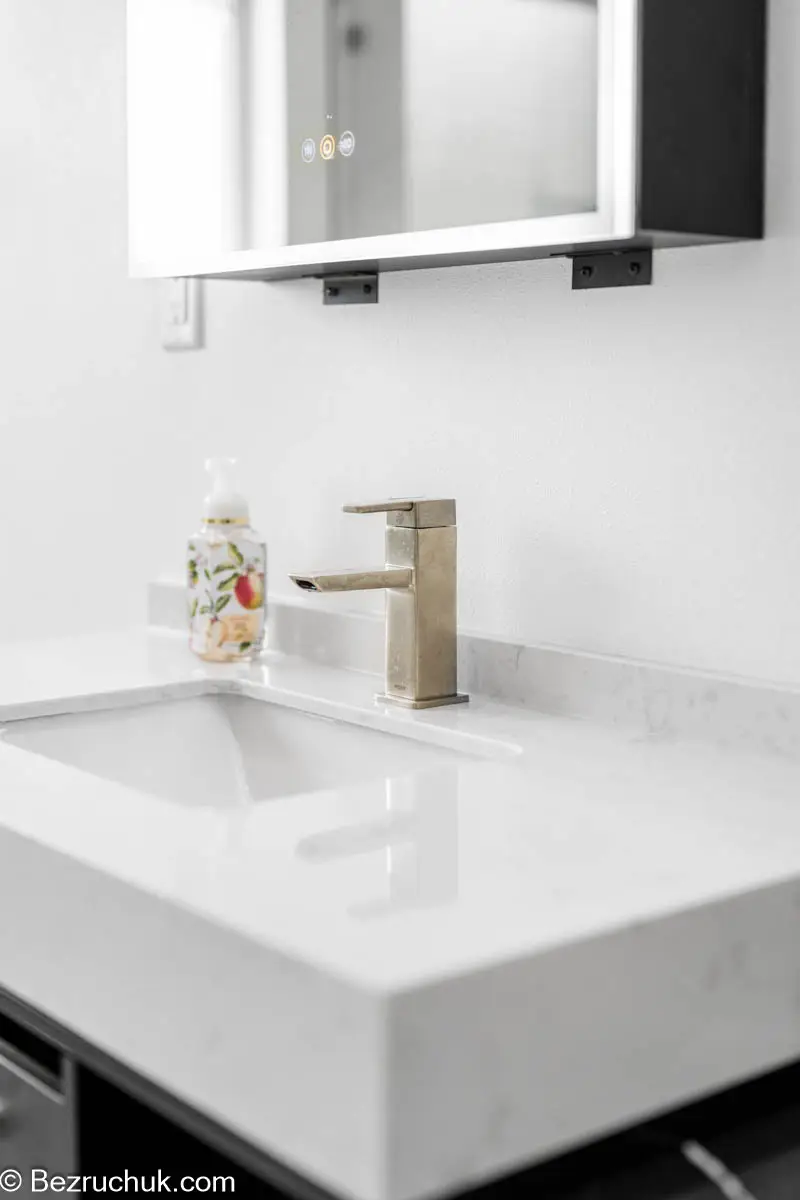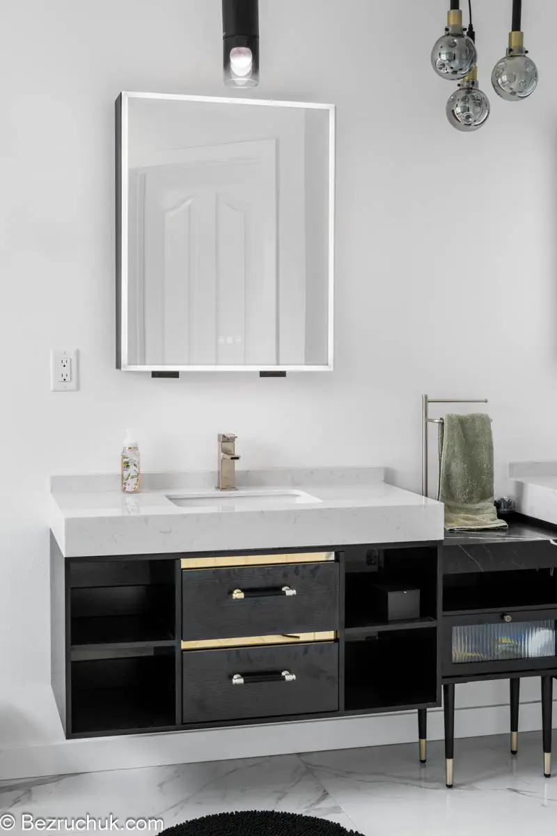 - Vanity, countertop, and storage installation designed for better daily function