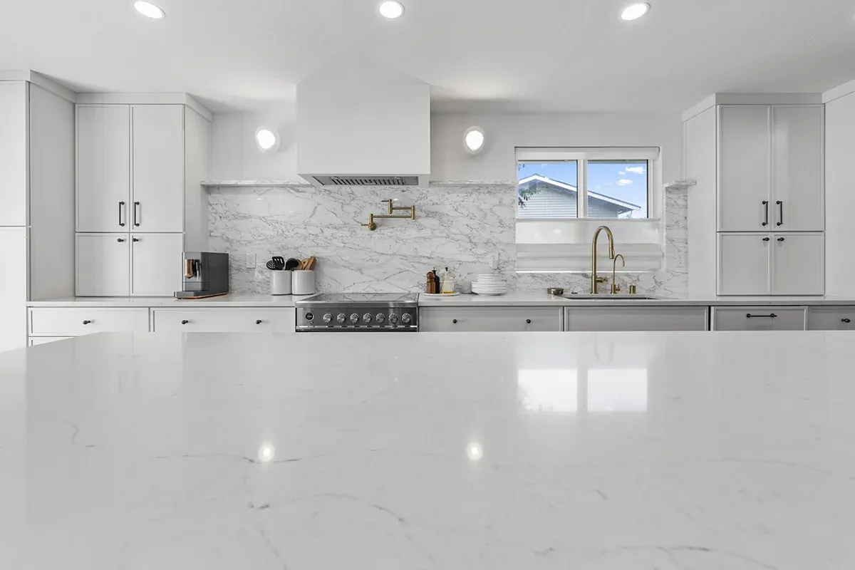 - Countertops and backsplash: Precision installation of quartz or stone surfaces with clean seams and professional finishing.