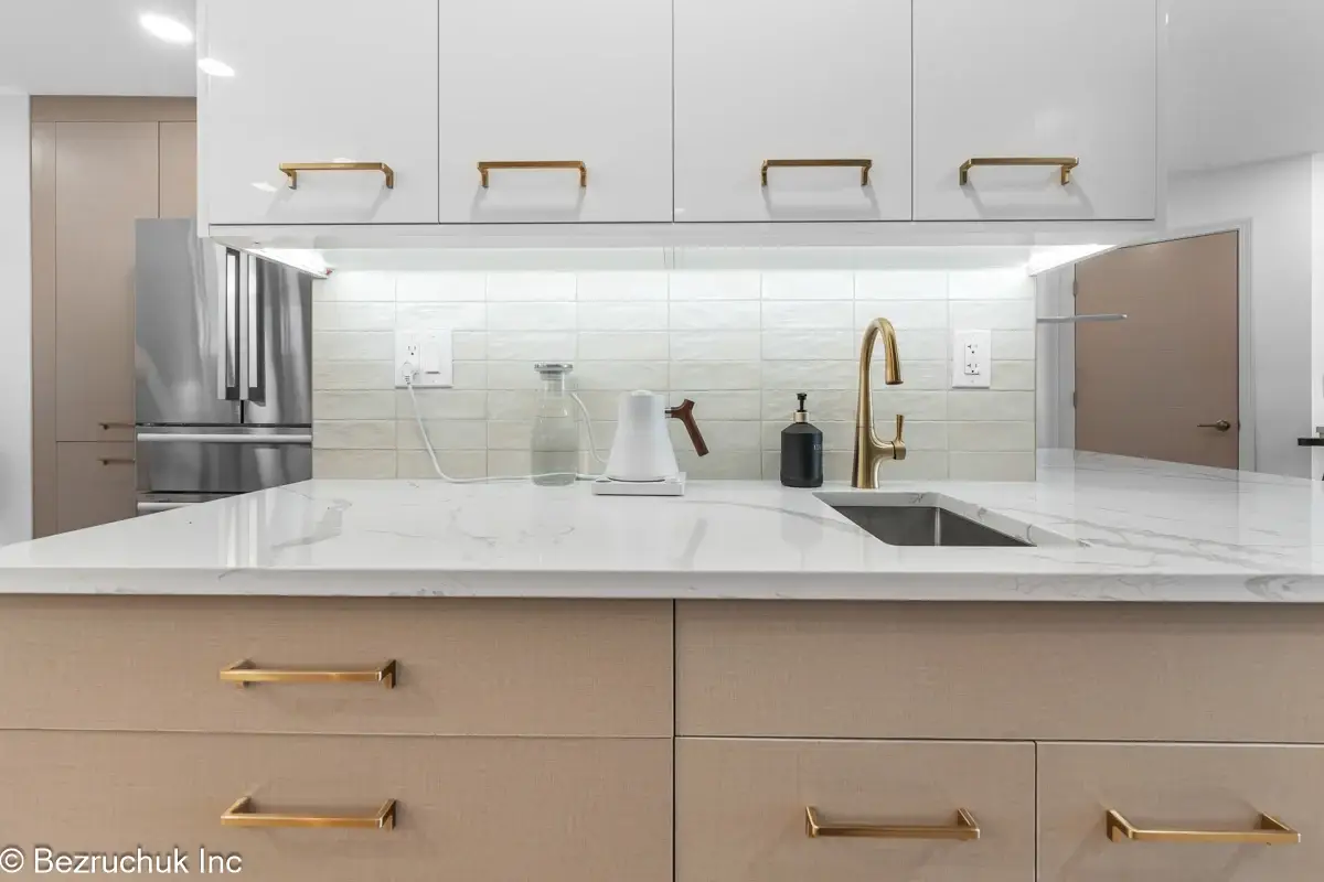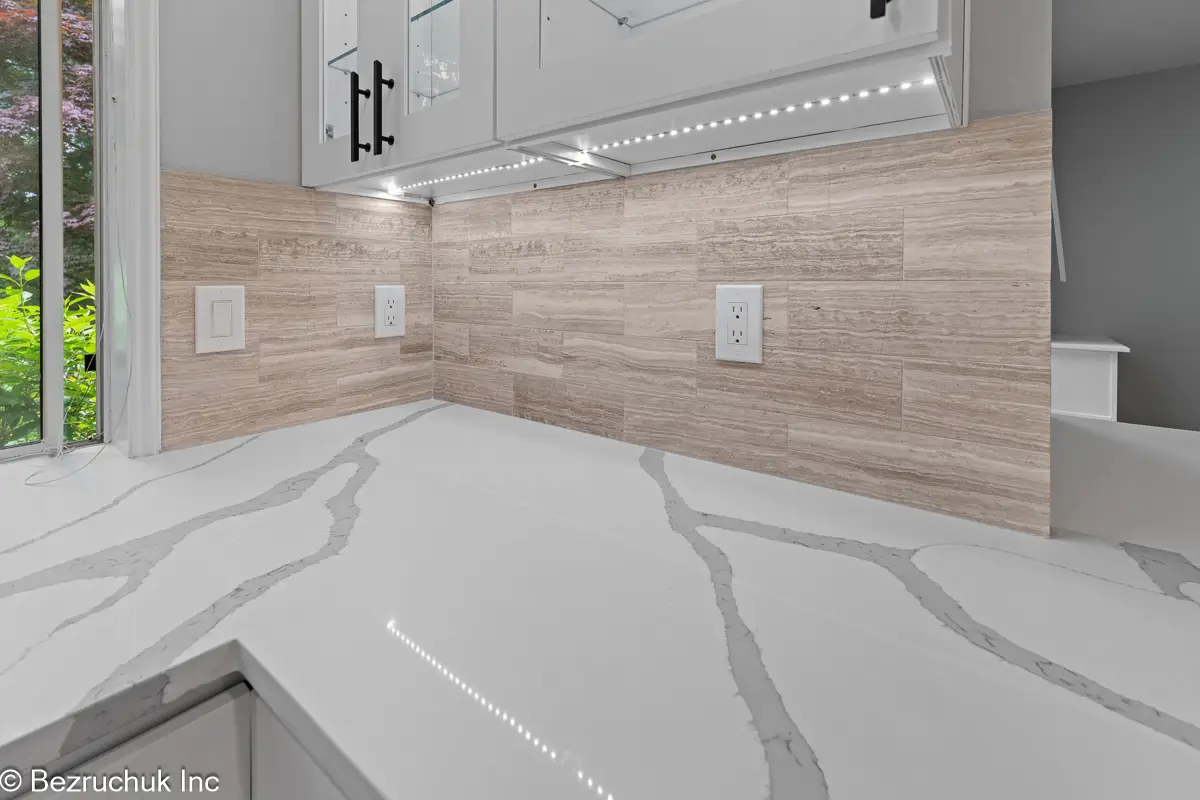 - Countertops & backsplash installation: Durable quartz or stone surfaces finished with precise layouts and flawless edge detailing.
